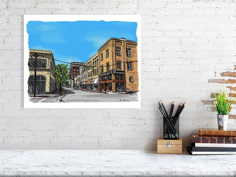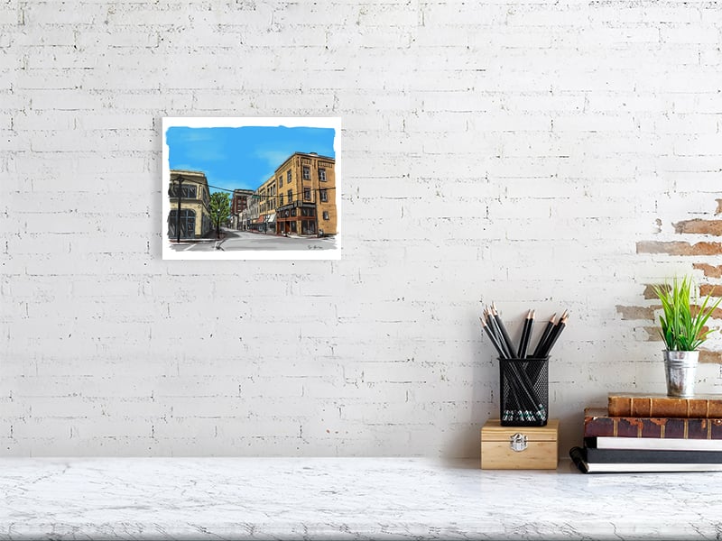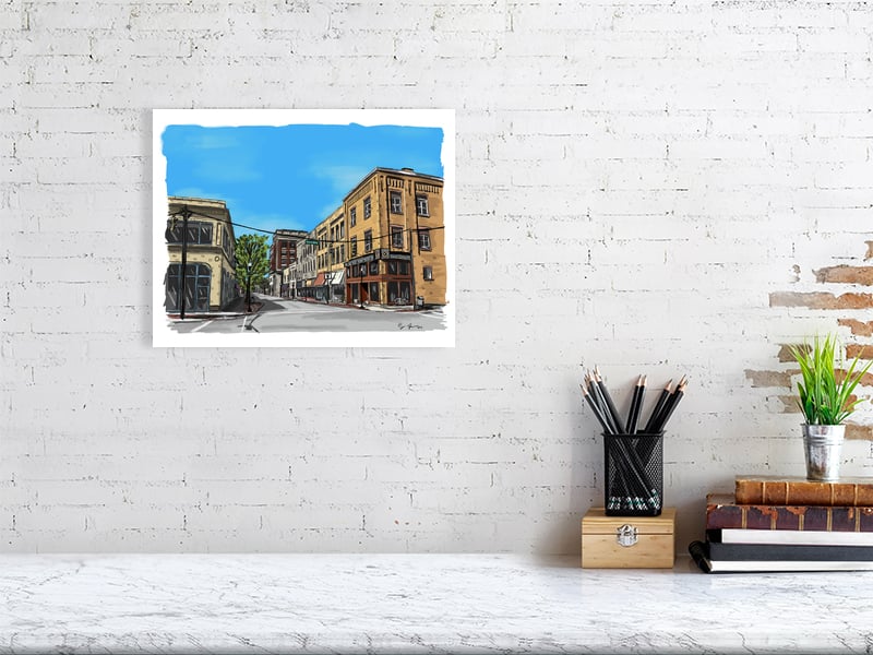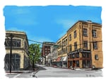 Urban Sketch of the Middle Block landscape on Chestnut Street in Meadville.