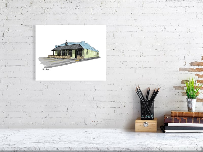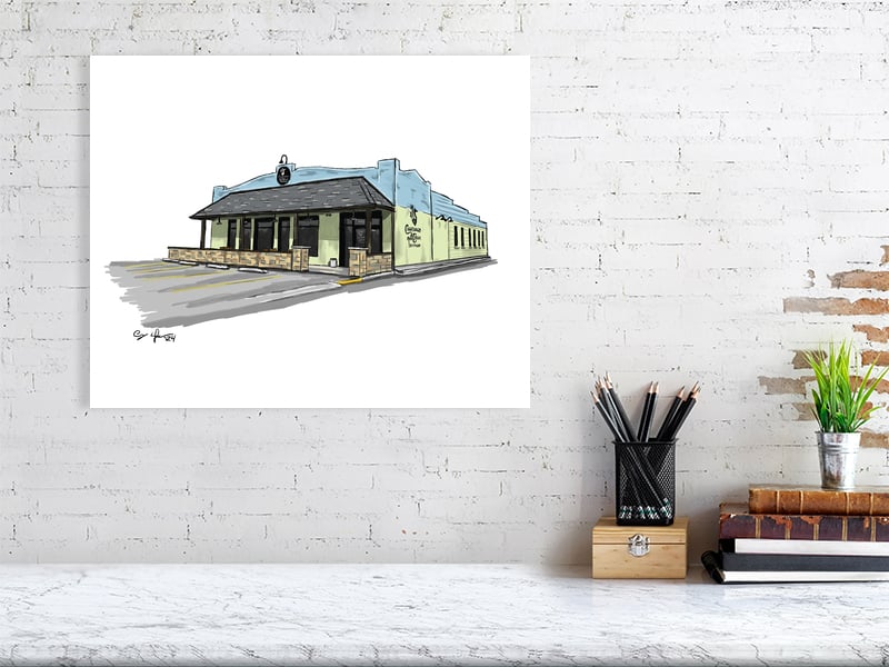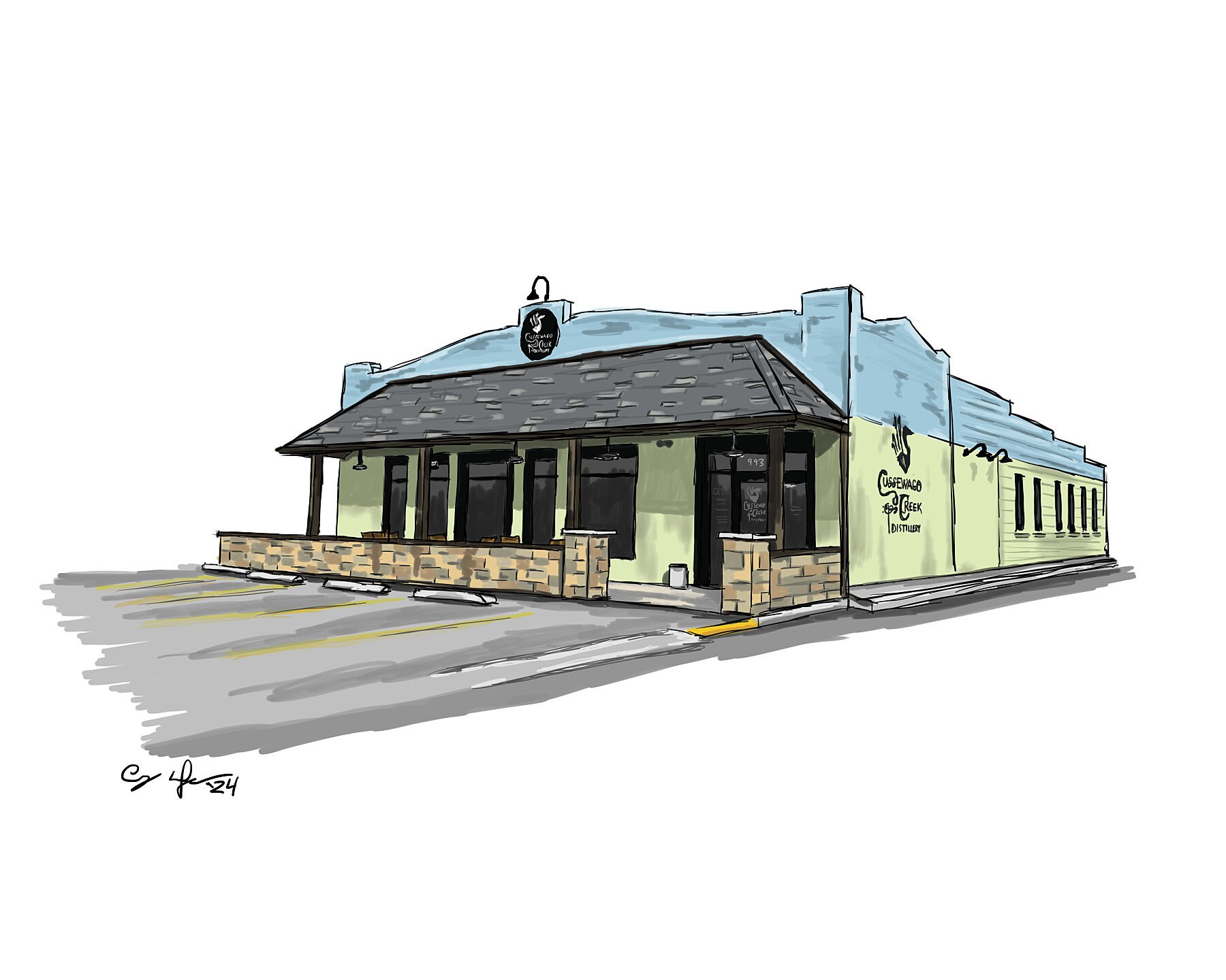 Urban Sketch of Cussewago Creek Distillery in downtown Meadville
