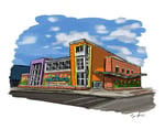 Urban Sketch of the Children's Art Museum in Downtown Erie.