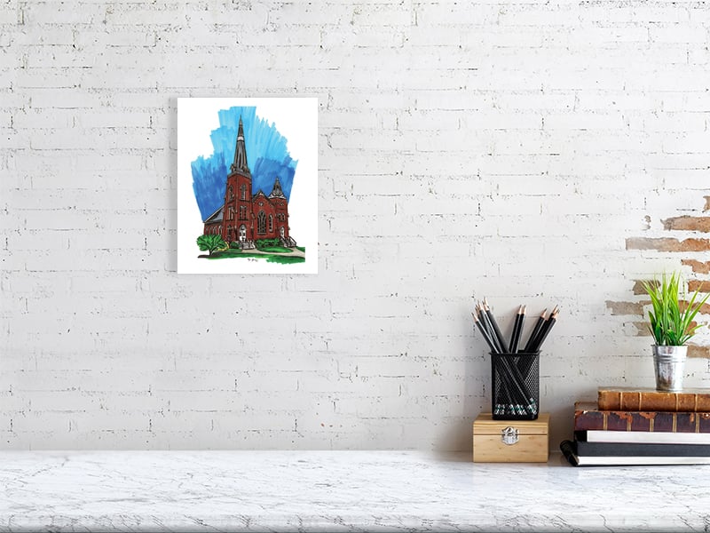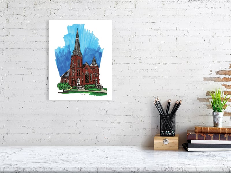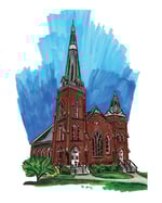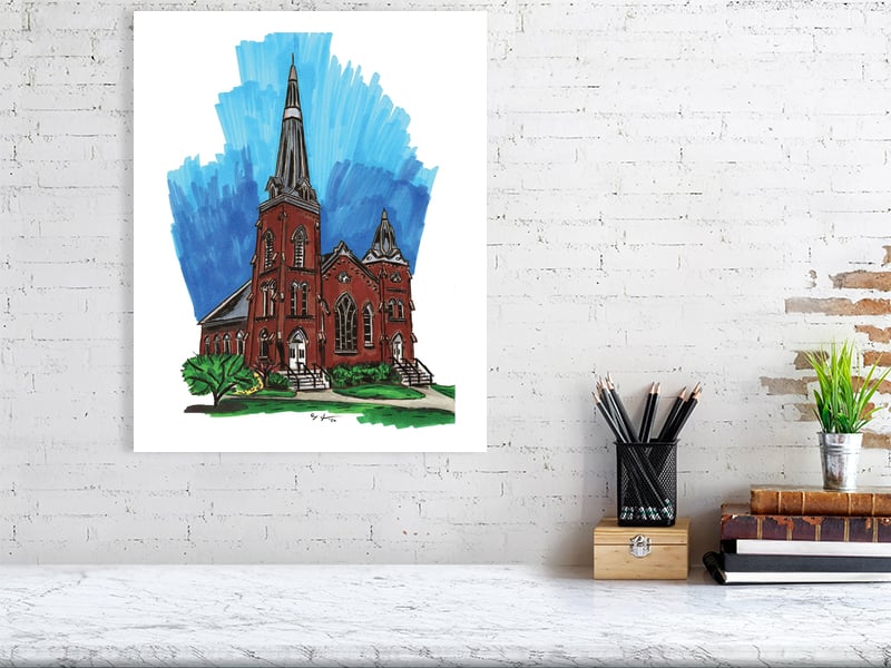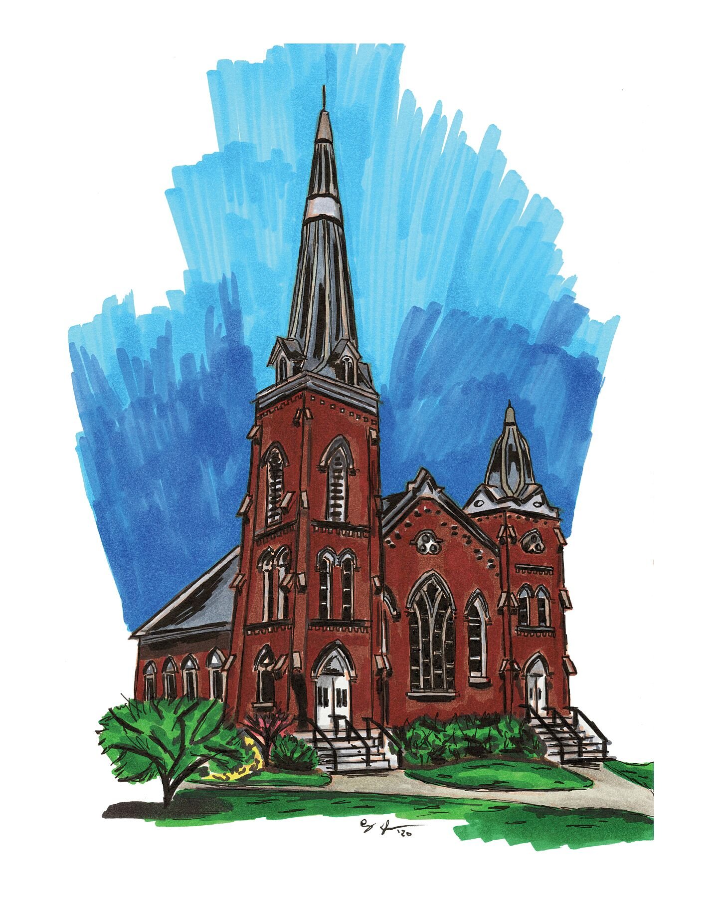 Urban Sketch of the First Presbyterian Church in Meadville.