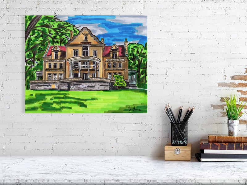 Urban Sketch of the historic Huidekoper House (Holland Hall) in Meadville.