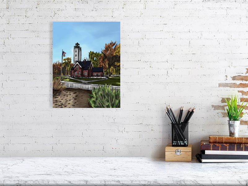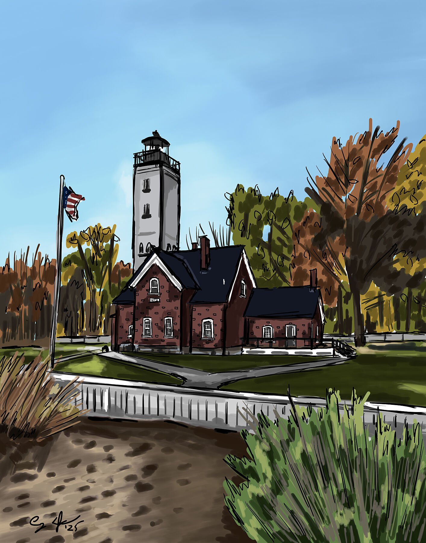 Urban Sketch of the Light house at Beach 11 in Presque Isle State Park.