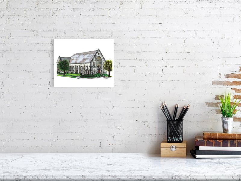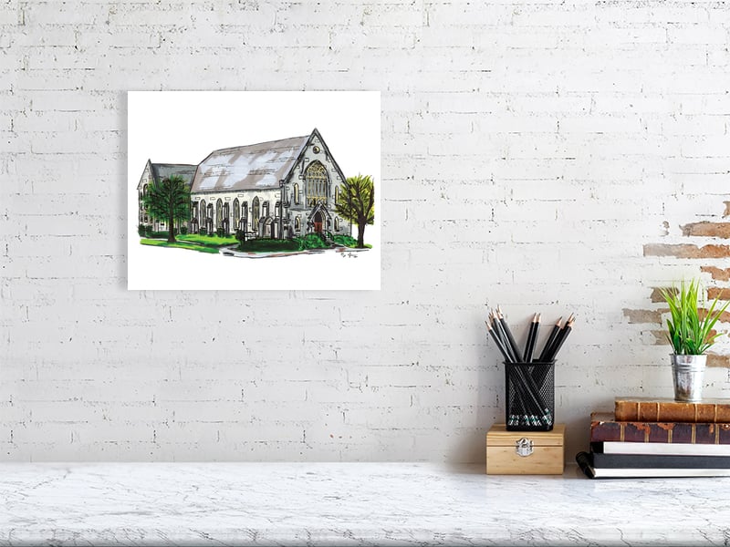 Urban Sketch of the Stone United Methodist Church in Meadville.