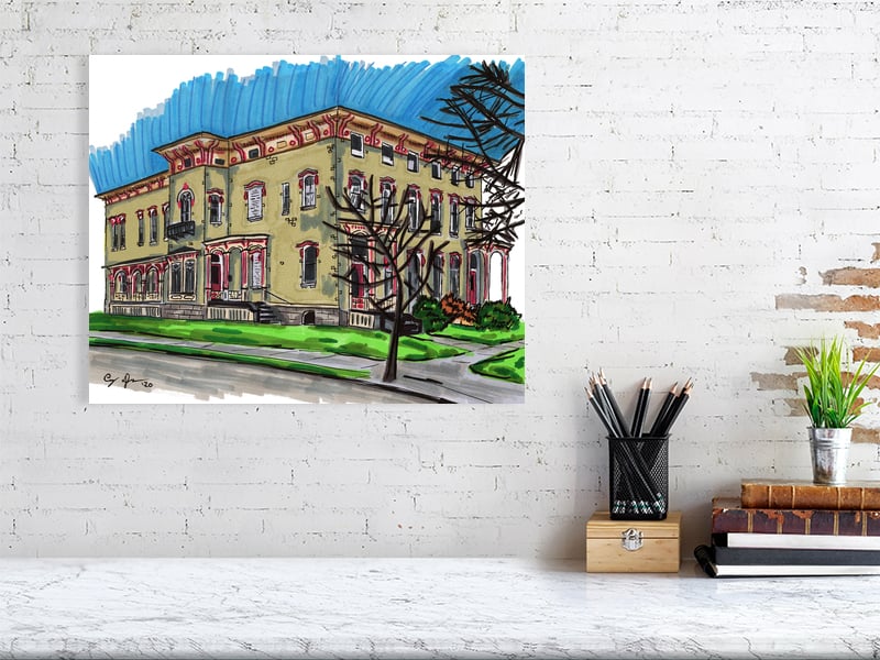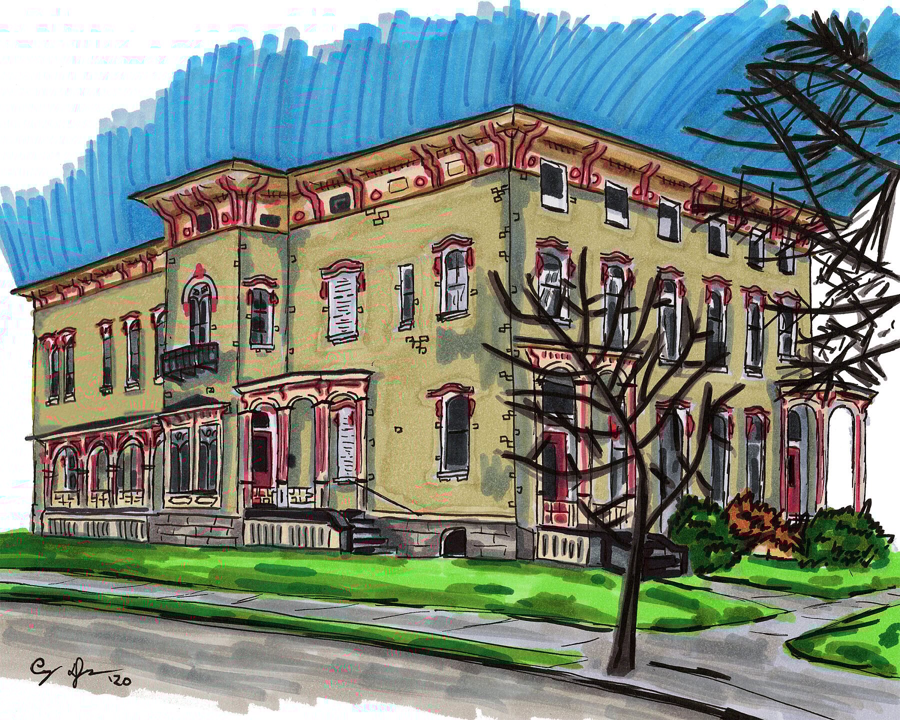 Urban Sketch of the historic Tarr Mansion in Meadville.